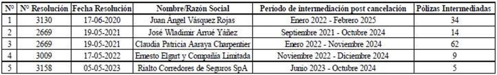 Mediante Resolución N° 1447, se aplicó a la compañía una multa de UF 200, por infringir lo dispuesto en los artículos 57 y 58 del DFL N°251 (Ley de Seguros) toda vez que, entre enero de 2021 y febrero de 2025, comercializó, al menos, 124 pólizas por intermedio de corredores de seguros cuyas inscripciones en el Registro antes indicado habían sido canceladas.